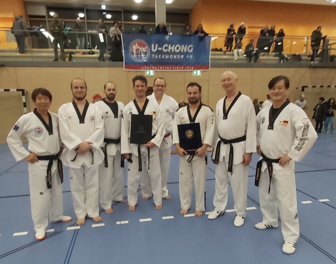 Wir besuchen mit unserem Taekwondo-Team Rosenheim regelmäßig hochkarätige Lehrgänge mit hochkarätigen koreanischen Meistern wie Chang Jae-Hee (9. Dan), und Jo Inyong (8. Dan) aus der internationalen U-Chong-Taekwondofamilie: U-Chong bedeutet Freundschaft, Gemeinschaft und befürwortet das grundsätzliche Miteinander, im Sport, wie im Leben. Meister Chang Jae-Hee studierte Taekwondo an der renommierten Yongin-Universität in Seoul, Südkorea und hat in den 1980er Jahren die koreanischen Militärmeisterschaften mehrfach gewonnen. Anfang der 1990er Jahre kam Meister Chang als Landestrainer für den Bereich Vollkontakt-Wettkampf nach Bayern und ist uns seither freundschaftlich verbunden. Meister Jo Inyong wurde ebenfalls koreanischer Militärmeister, er leitete außerdem das TAIGON-Demoteam der Yongin-Universität, wo er Taekwondo studierte. 2013 gründete er seine U-Chong-Taekwondoschule in Fürth.